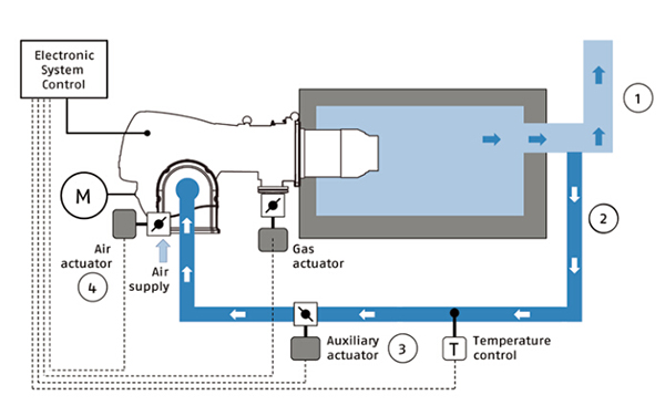 FGR烟气外循环燃烧,将部分烟气与空气混合后送至燃烧室助燃,混合后的助燃风可以有效降低烧室内温度和氧量度。